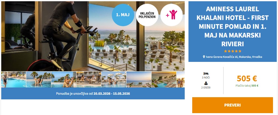 5* PRVOMAJSKI ODDIH V DALMACIJI! 3 noči s polpenzionom v Aminess Laurel Khalani Hotel 5* že za 505 eur (2 osebi + otrok)