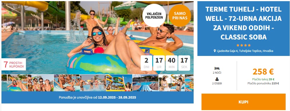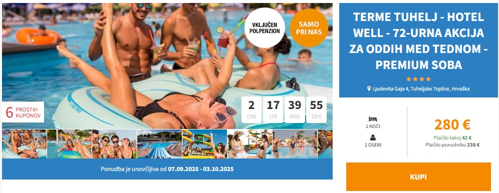 Primeri ponudbe bivanja v Termah Tuhelj- Hotel Well 4*: