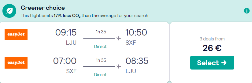 Pimer letalske povezave iz Ljubljane v Berlin (npr. 04. – 11.03.2020)