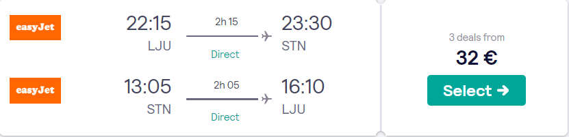Pimer letalske povezave iz Ljubljane v London (npr. 09. – 16.04.2020)
