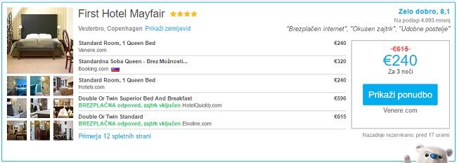 Primer ponudbe nočitev v Kopenhagnu (23.12.-26.12.2016):