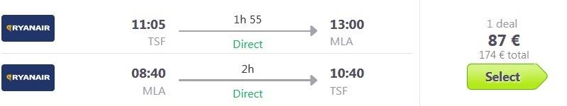 Treviso – Malta, Ryanair, prtljaga ni vključena, 87 eur/osebo