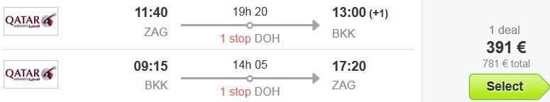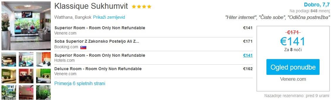 Skupna cena celotnega paketa 9 dnevnega dopusta za dve osebi (letalo + hotel) na Tajskem tako znaša 923 eur (oz. 462 eur na osebo).