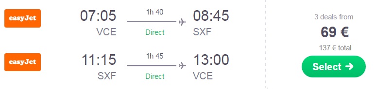 letaloBenetke- Berlin, EasyJet, check in prtljaga ni vključena, 69 eur/osebo