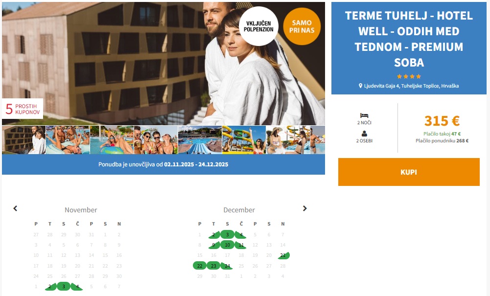 Ponudba je unovčljiva do 24. 12. 2025 (bivanje od nedelje do petka)