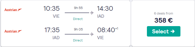 Primer povratne letalske povezave z Dunaja v Washington (28.04. – 06.05.2020)