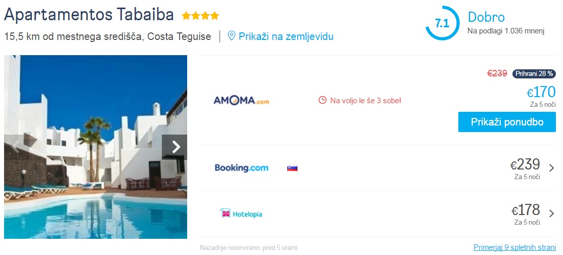 Primer namestitve na otoku Lanzarote (07.06.-12.06.2018):