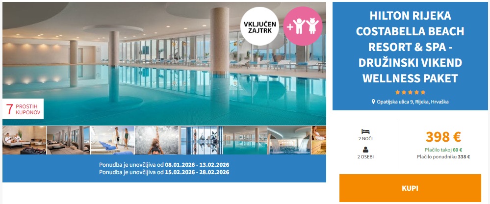 Ponudba je unovčljiva do 13. 2. 2026 in od 15. 2. do 28. 2. 2026 (bivanje od četrtka do nedelje)