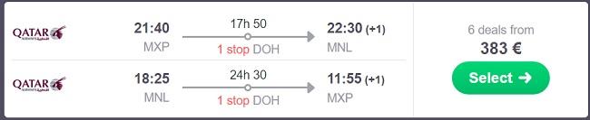 Milano (MXP) – Manila (MNL) – Milano (MXP), že za 383 eur (ang. povezava skyscanner)