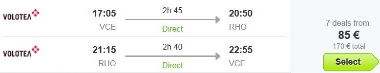 Benetke- Rodos, Volotea, prtljaga ni vključena, 85 eur/osebo