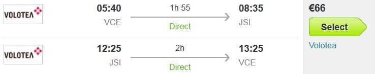 Benetke (VCE) – Skiatos (JSI) – Benetke (VCE), že za 66 eur (ang. povezava skyscanner.ie)