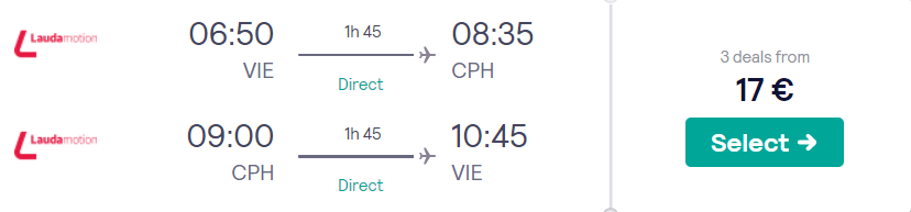 Copenhagen (CPH), že za 17 eur