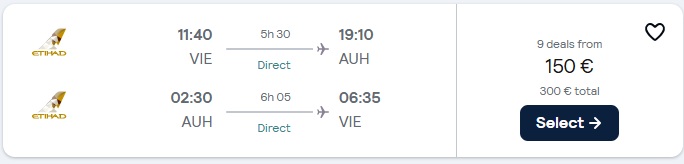 Dunaj (VIE) – Abu Dhabi (AUH), že za 150 eur