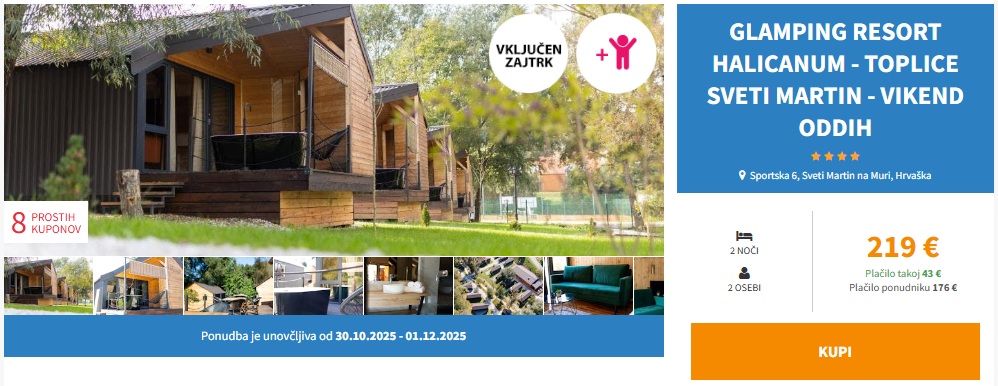 Ponudba je unovčljiva od 30. 10. 2025 do 1. 12. 2025 (bivanje od petka do ponedeljka)