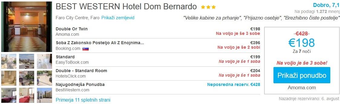 Primer ponudbe nočitev v Faru (19.10.-26.10.2016):