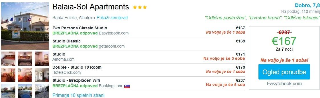 V Albufieri je na voljo 7 nočitev (za termin 6.5. – 13.5.2016) v dobro ocenjenem APP v središču obalnega bisera s 3*Balaia-Sol Apartments, kjer je cena za dve osebi že od 167 eur.