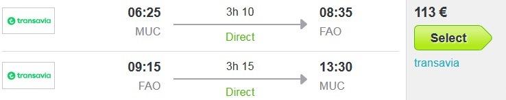 Ugodne letalske karte v Faro vam omogoča Transavia z odhodom iz Dunaja, kjer je povratna letalska povezava za navedeni termin na voljo, že za 113 eur na osebo (v ceno ni vključena check in prtljaga z izjemo manjše brezplačne ročne prtljage).