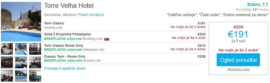 Skupna cena celotnega paketa 8 dnevnega dopusta za dve osebi (letalo + hotel) na jugu Portugalske tako znaša 395 eur (oz. 198 eur na osebo).