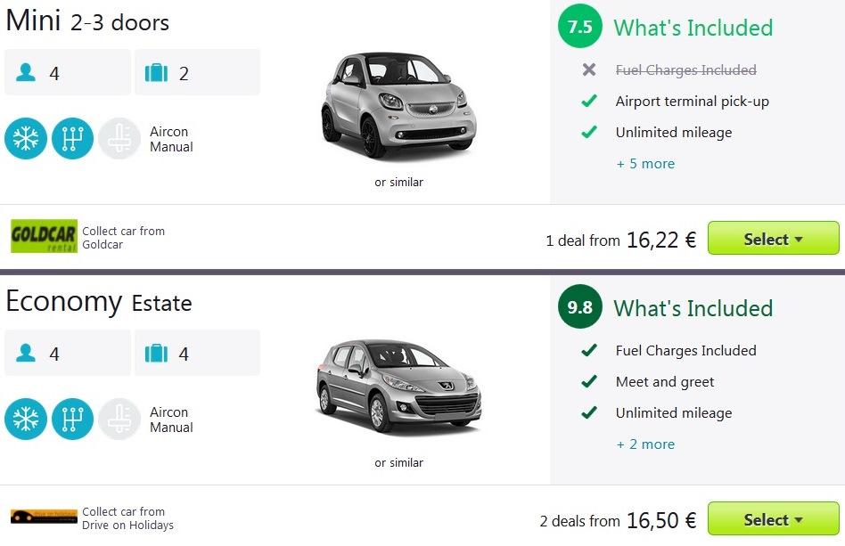 Najem avtomobila na letališču v Faru, že od 17 eur za 7 dniSkupna cena celotnega paketa 8 dnevnega dopusta za dve osebi (letalo + avtorent) na Portugalskem, v obalni pokrajini Algarve tako znaša 177 eur (oz. 89 eur na osebo).