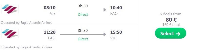 Dunaj-Faro; Eurowings, prtljaga ni vključena, 80 eur/osebo
