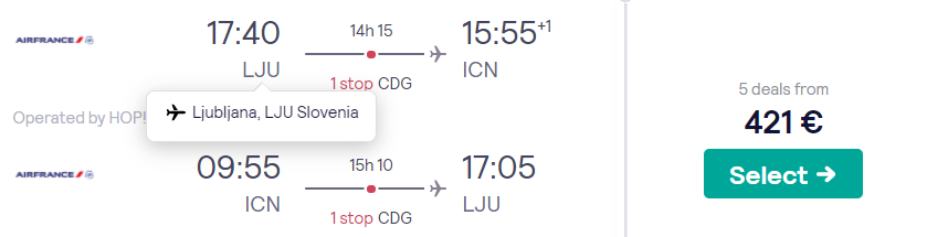 Primer povratne letalske povezave iz Ljubljane v Seul (12.03. – 19.03.2020)