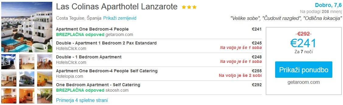 Milano – Lanzarote, Ryanair, prtljaga ni vključena, 58 eur/oseboPrimer namestitve na otoku Lanzarote (15.09.-22.09.2016):