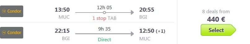 Informacija o letu: 0-1 postanka, prtljaga vključenaMunchen (MUC) – Bridgetown (BGI) – Munchen (MUC), že za 440 eur (skyscanner.net)