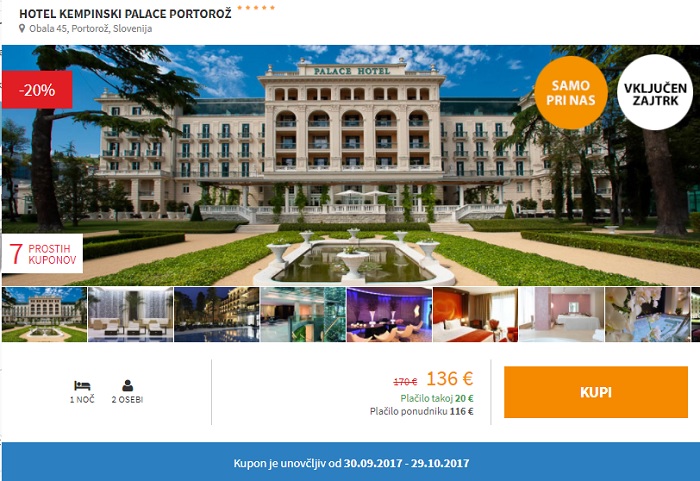 – Hotel Kempinski Palce Portorož 5*: 1x nočitev z zajtrkom za 2 osebi… že za 136 eur