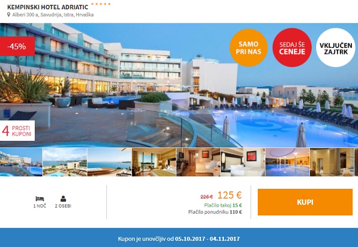 – Kempinski Hotel Adriatic 5*, Savudrija: 1x nočitev z zajtrkom za 2 osebi… že za 125 eur