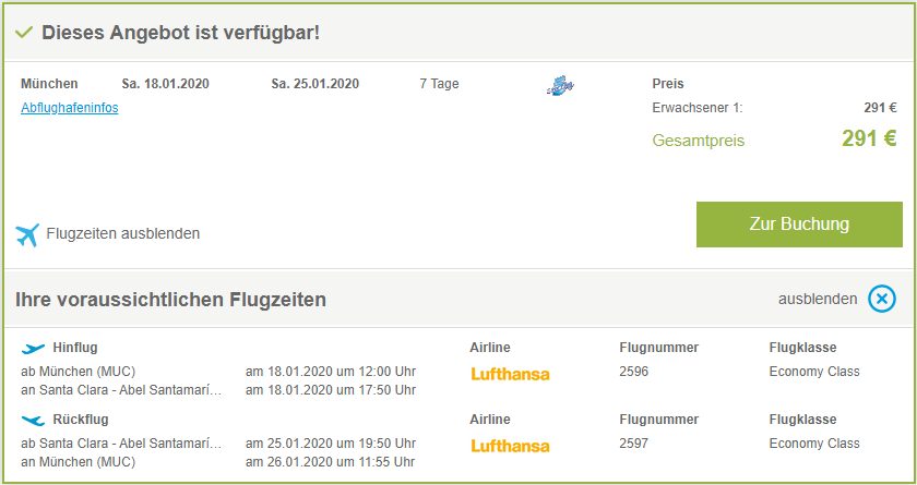 Primer povratne letalske povezave iz Munchna v Santa Claro (18. – 25.01.2020)