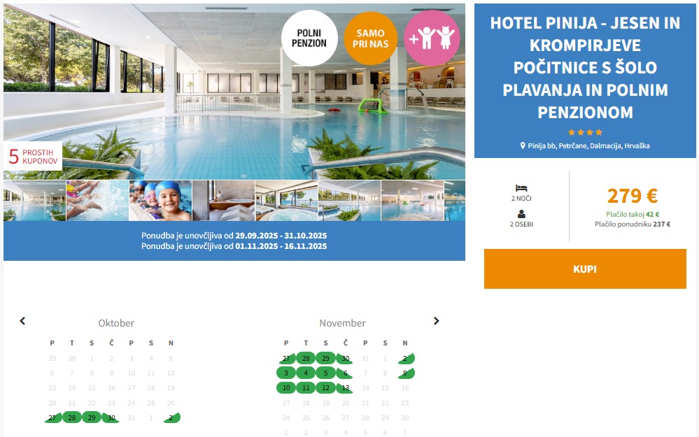 Ponudba je unovčljiva do 31. 10. 2025 in od 1. 11. do 16. 11. 2025