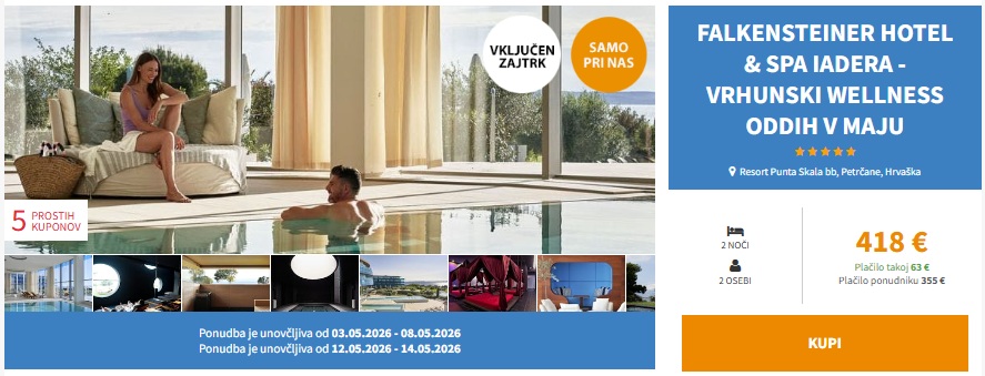 Ponudba je unovčljiva od 3. 5. do 8. 5. 2026 in od 12. 5. do 14. 5. 2026