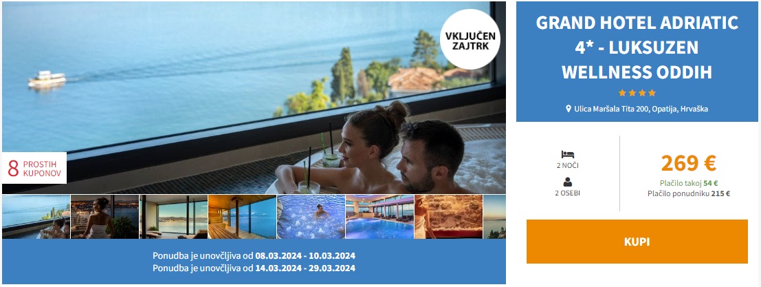 Ponudba je unovčljiva od 8. 3. do 10. 3. in od 14. 3. do 29. 3. 2024