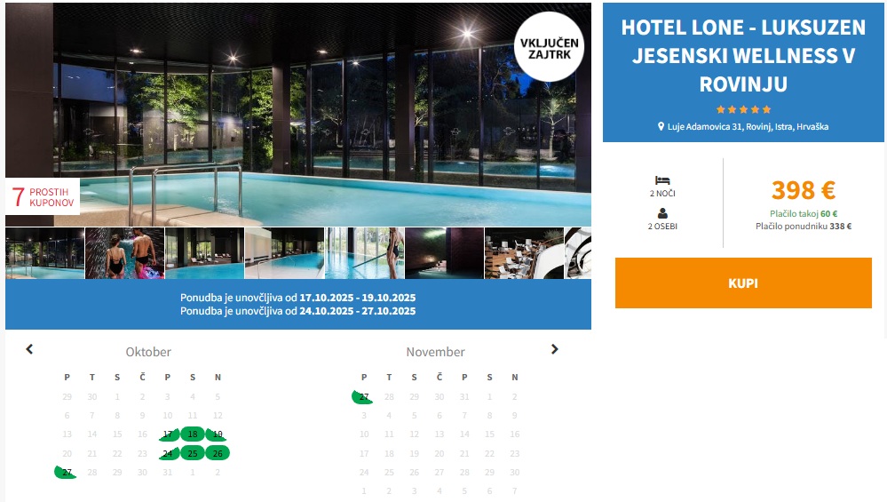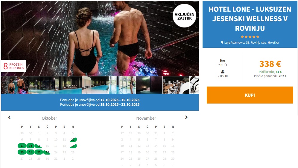 Ponudba je unovčljiva od 17. 10. do 19.10.2025 in od 24. 10. do 27. 10. 2025