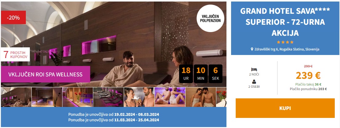 Ponudba je unovčljiva do 8. 3. 2024 in od 11. 3. do 25. 4. 2024