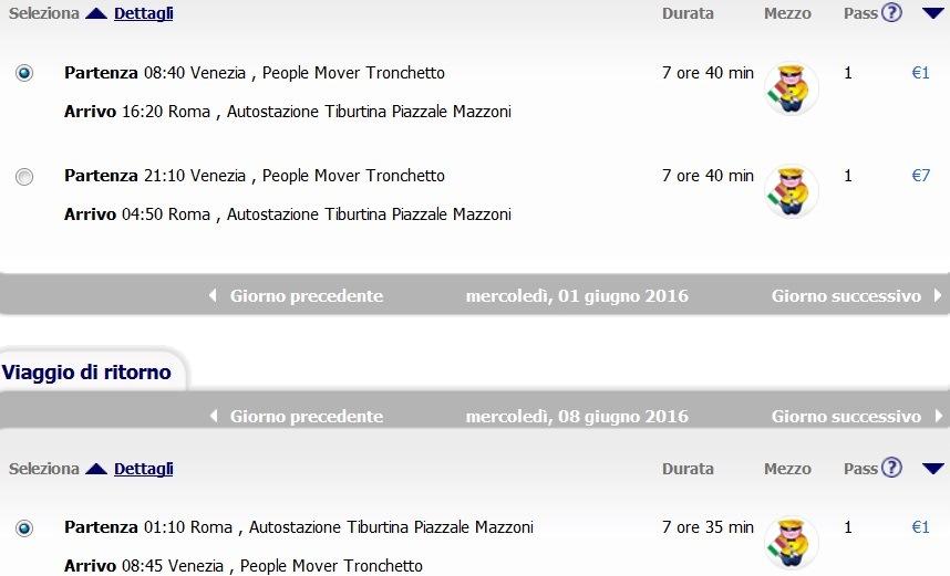 Primer povratne avtobusne karte iz Benetk v Rim (2 €):
