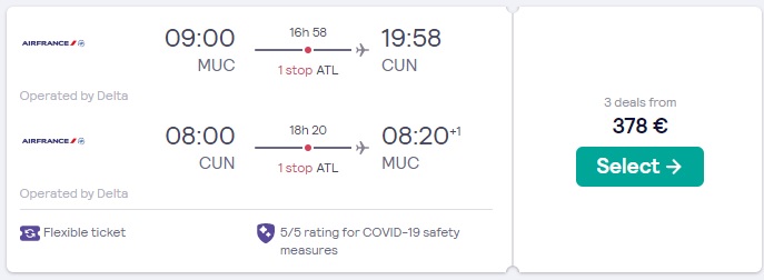 Primer povratne letalske povezave iz Munchna v Cancun (npr. 31.10. – 12.11.2021)