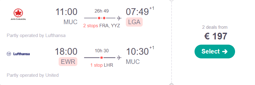 Primer povratne letalske povezave iz Munchna v New York (16.- 23.03.2020)