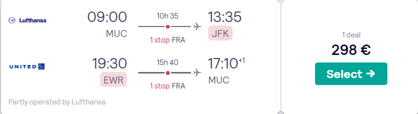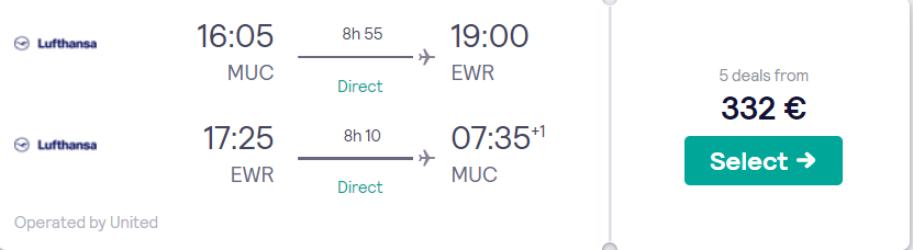 Primer povratne letalske povezave iz Munchna v New York (16.- 23.08.2020)