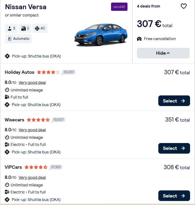 Najem avtomobila na Okinawi (07.-16.11.2025)