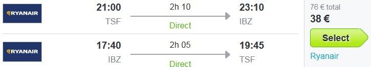 Skupna cena celotnega paketa 4 dnevnega dopusta za dve osebi (letalo + hotel) na Ibizi tako znaša 169 eur (oz. 85 eur na osebo).