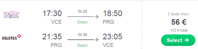 Benetke – Praga, Wizz Air/Volotea, check in prtljaga ni vključena, 56 eur/osebo