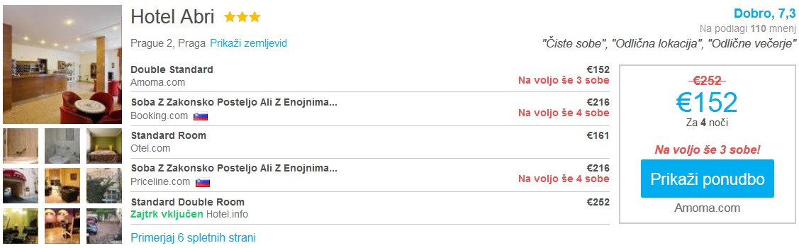 Primer hotelske namestitve v Pragi (09.10.-13.10.2017):
