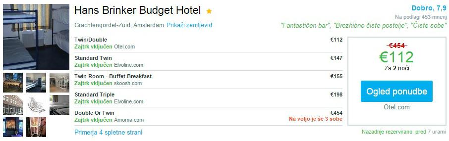 Rezervacija hotela Hans Brinker Budget Hotel za dve osebi (2 nočitvi + zajtrk) za 112 eur na povezavi tukaj