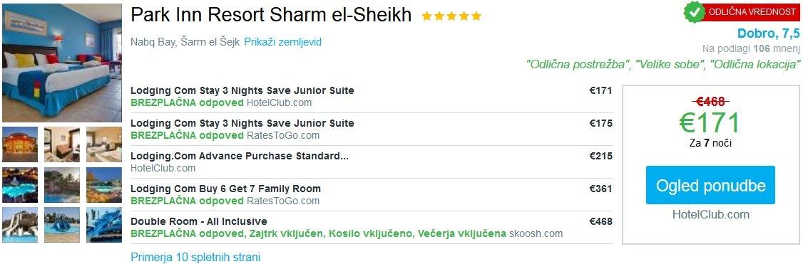 – Rezervacija hotela s 5*Park Inn Resort Sharm el-Sheikh za dve osebi (7 nočitev) za 171 eur na povezavi tukaj