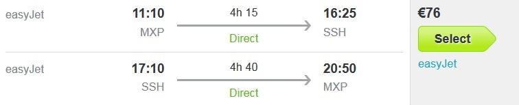 Ugodne letalske karte vam omogoča nizkocenovnik EasyJet z odhodom iz Milana , kjer je povratna letalska povezava za navedeni termin na voljo, že za zelo ugodnih 76 eur na osebo (v ceno ni všteta prtljaga, z izjemo brezplačne osebne prtljage).