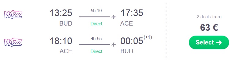 Budimpešta (BUD) – Lanzarote (ACE) – Budimpešta (BUD), že za 63 eur (angl. povezava skyscanner)