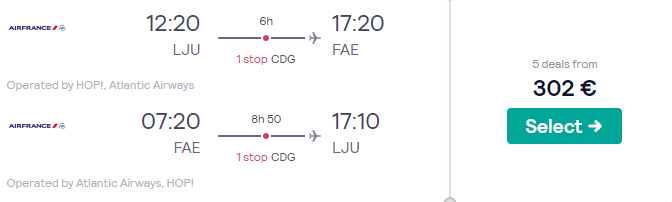 Primer povratne letalske povezave iz Ljubljane v Sorvagur (19. – 24.08.2020)