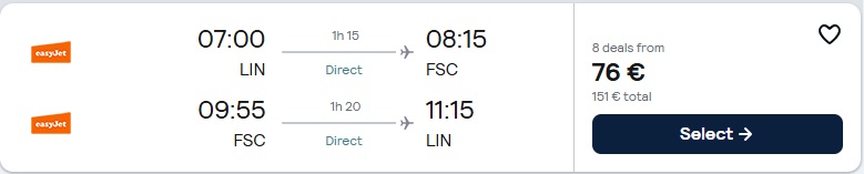 Milano Linate (LIN) – Figari (FSC), že za 76 eur