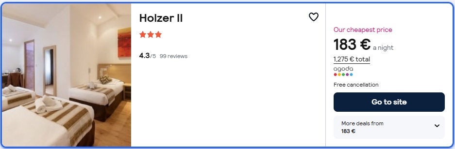 Seštevek cene primera paketa (letalo + nastanitev) za 7 noči bivanja za dve osebi na Korziki tako znaša 1427 eur (oz. 714 eur na osebo).